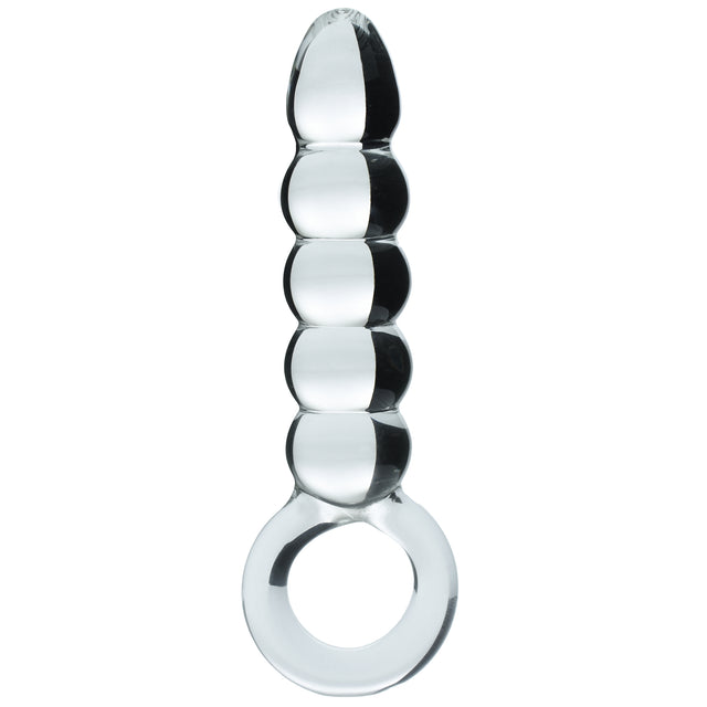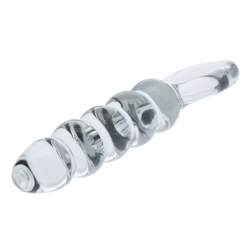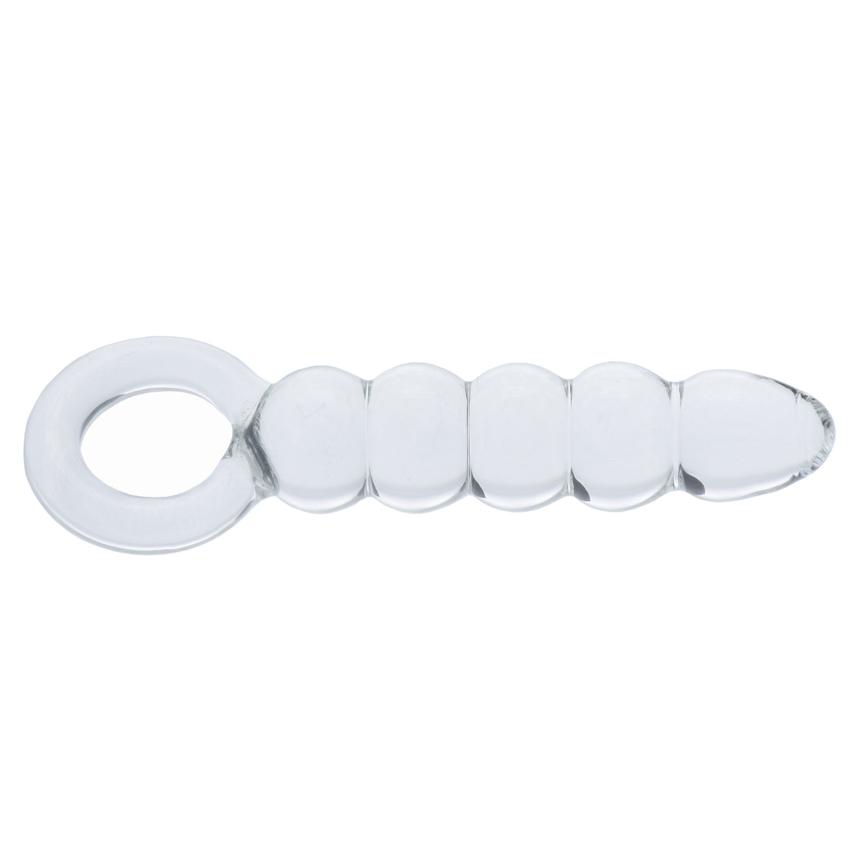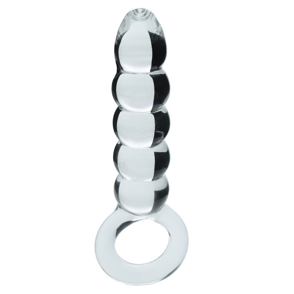 Five rounded ribs expertly massage your internal pleasure zones. Can be used for vaginal or anal play, and the loop handle offers a secure grip for peace of mind. Smooth, cool to the touch and virtually friction free, glass sex toys offer unique sensations that are easily enhanced with lube, heat or cool preparation. The slim tip makes insertion easy and pleasurable, especially once you apply a layer of your favourite lubrication.