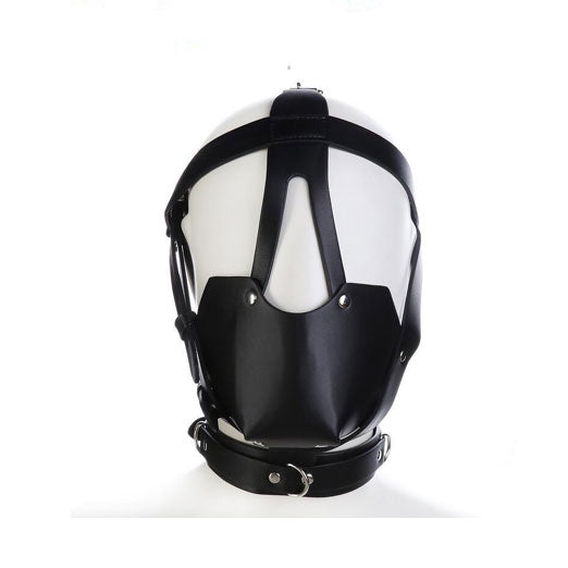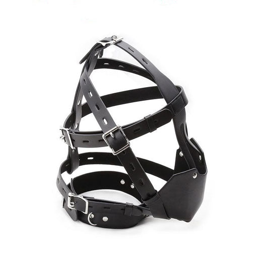 One of the most effective ways to keep their mouth sealed is to restrict the jaw movement, this head harness assists in that and is also equipped with a 1.75" pvc breathable gag ball. Designed with five straps, incorporating the collar. This is the most constraint muzzle we offer. The collar strap comes with a front neck D-ring that’s perfect for attaching a leash or allows you to anchor your victim's head to a post or headboard.