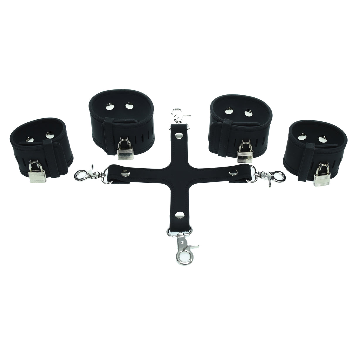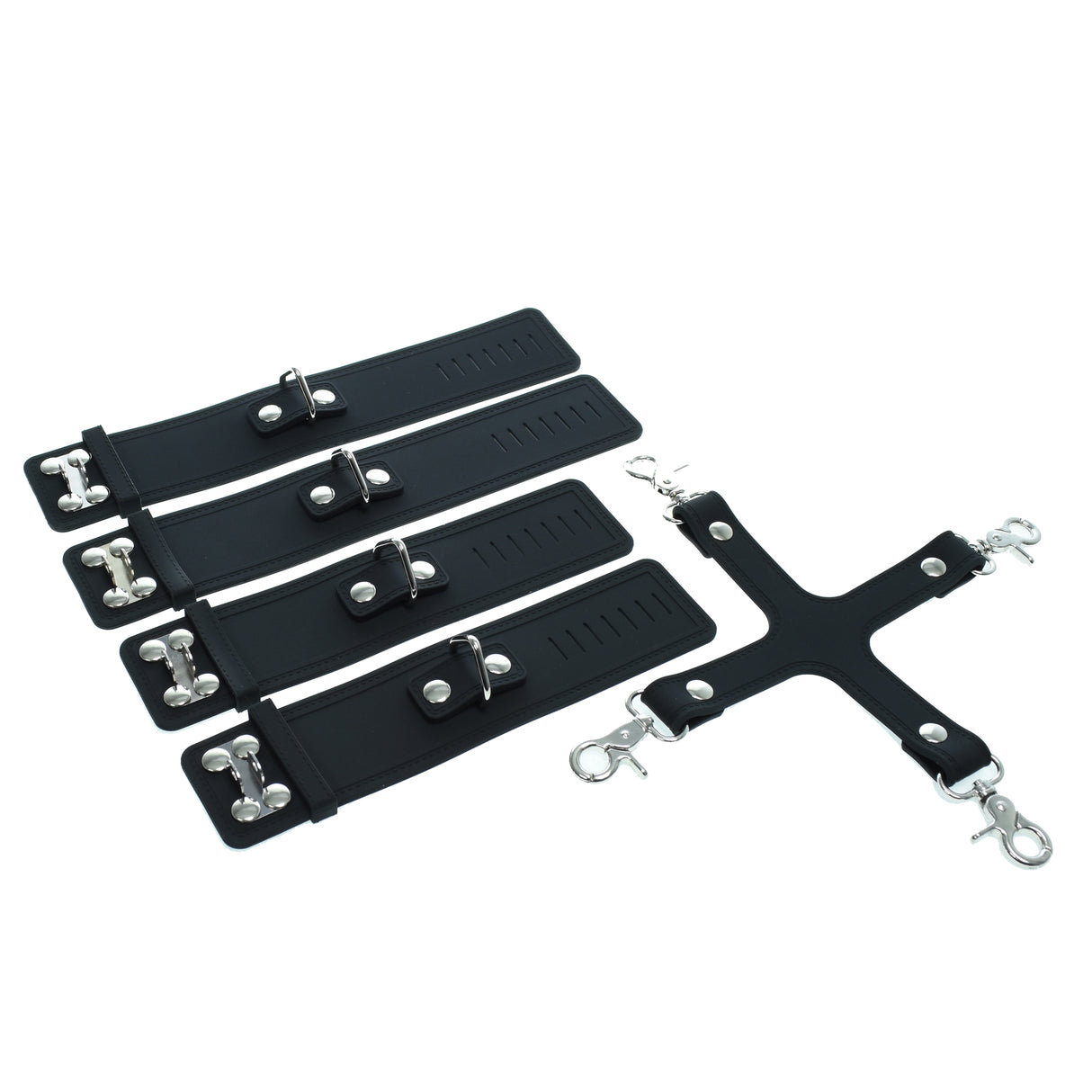 This gorgeous hog tie set is made from ultra smooth body safe silky Silicone, but don't get fooled by its appearance and feel, this will keep your sub in their confined position just as you left them.