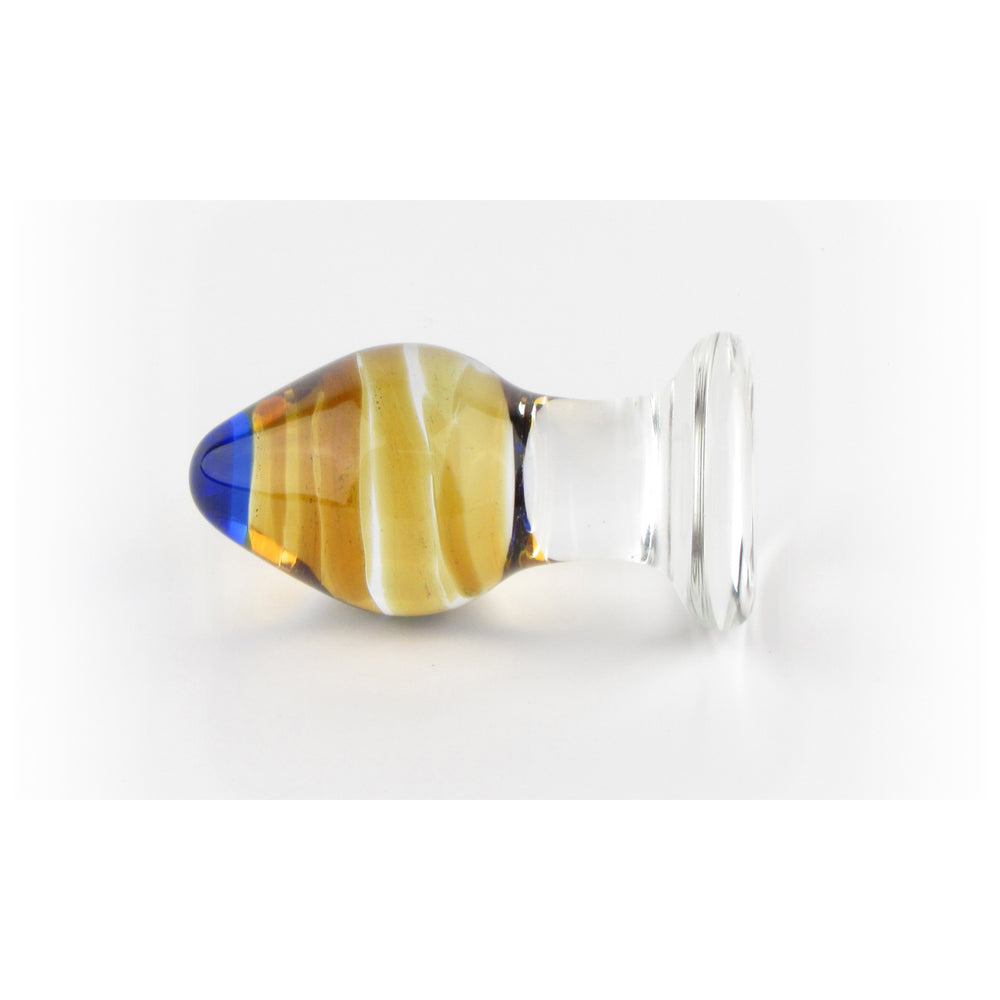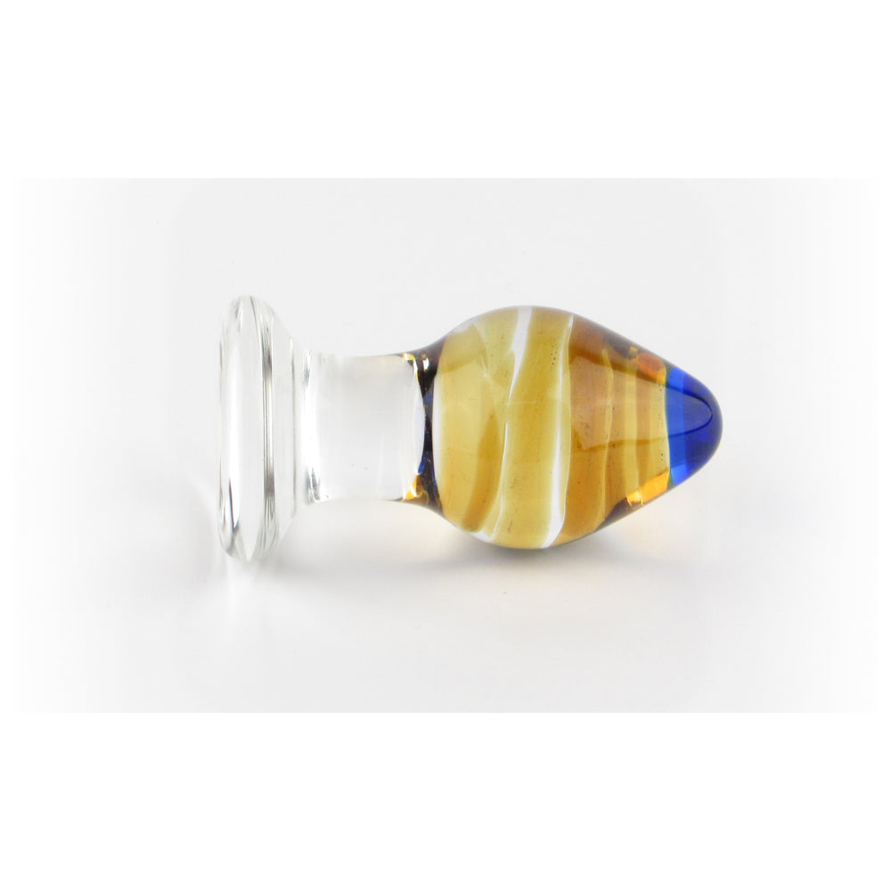 With gorgeous swirls of blue and Yellow embedded in the head, the Sexy Spades Plug is a pyrex glass anal wonder that looks just as good as it feels. With a classically tapered shape, the big head has a slightly pointed arrow shaped head that inserts easily. Once the tip is inside, the Spades widens out dramatically before thinning back into a straight neck ending with a nice wide base; it's shaped perfectly for longer term wear. The completely firm, supremely smooth feel of the glass makes sure that this plug will hit the right spots effortlessly and stay precisely in place for ultimate satisfaction.