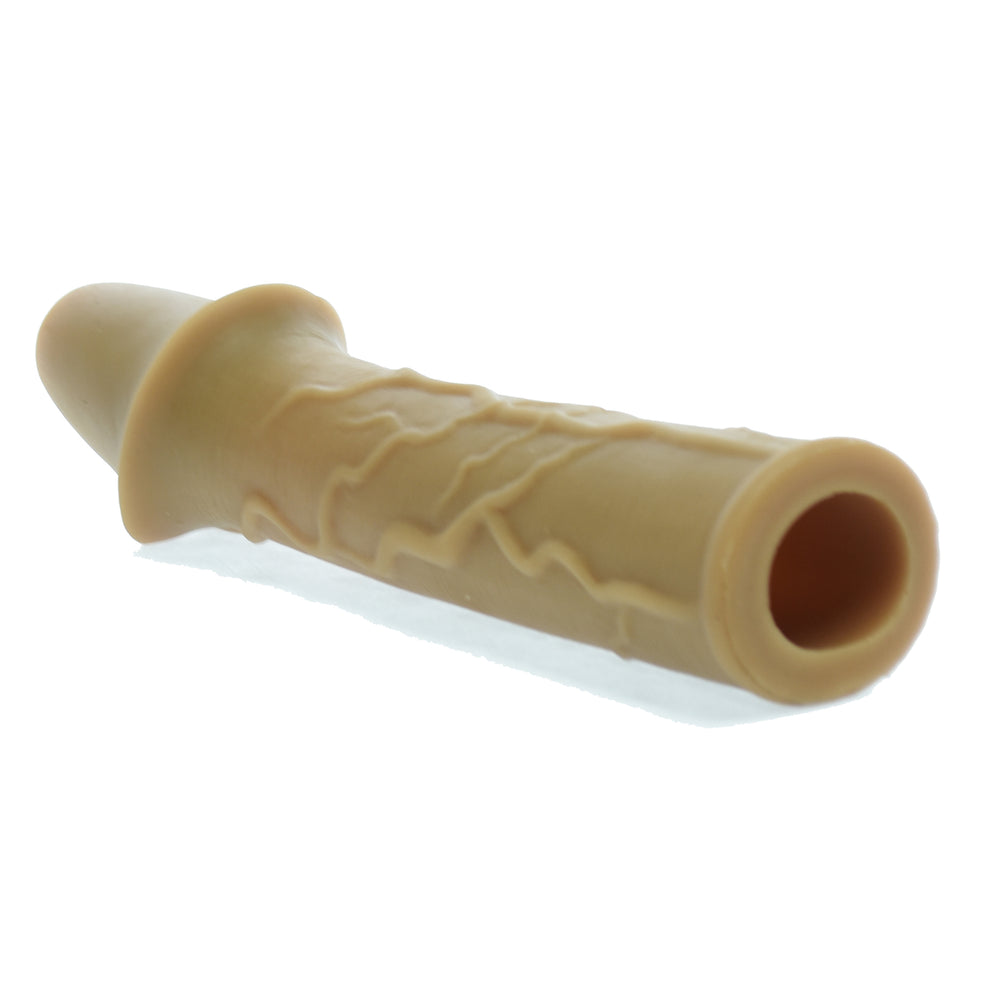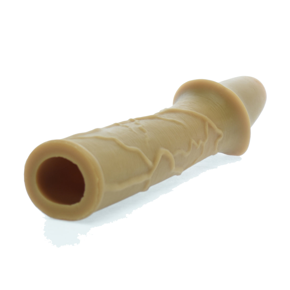 Add girth and length to your cock, give your partner the pleasure they always wanted with this 9 inch liquid silicone cock sleeve. This will offer deeper thicker penetration. Best suited for cock size 5" - 8"