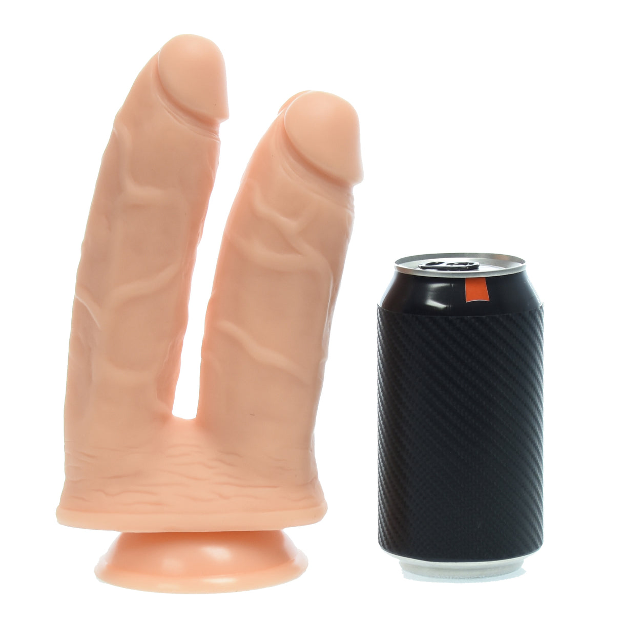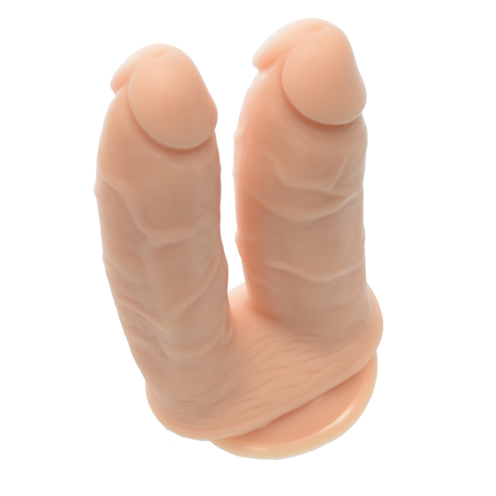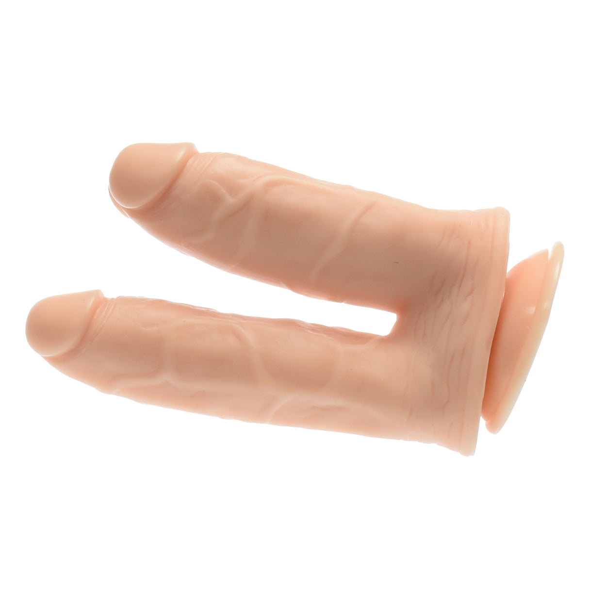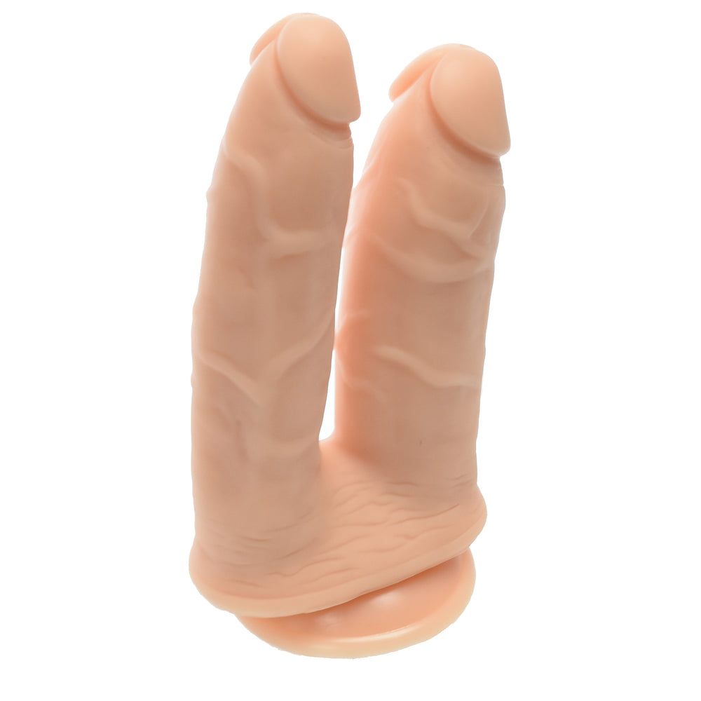 For some filling one hole at a time is just not enough, that's when this realistic double penetration dildo comes in handy, both dildos are girthy this makes sure the holes are filled and stretched, attached is a strong 3.5" suction cup that will keep this toy in place or can be used as a handle for thrusting your holes simultaneously.