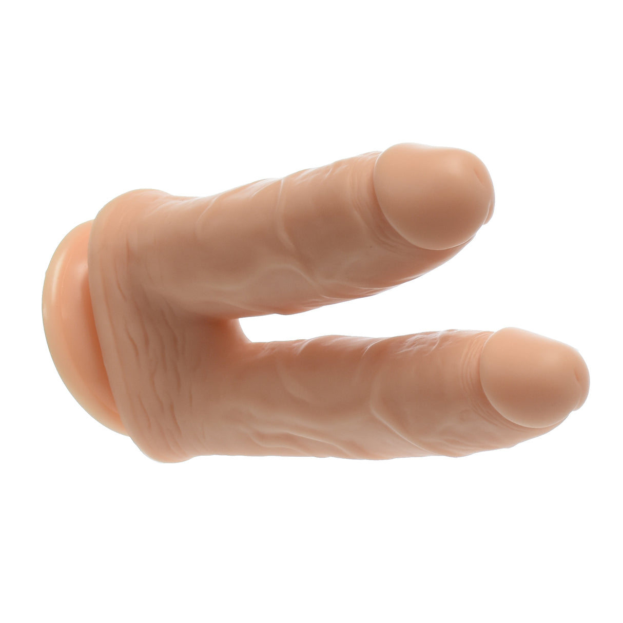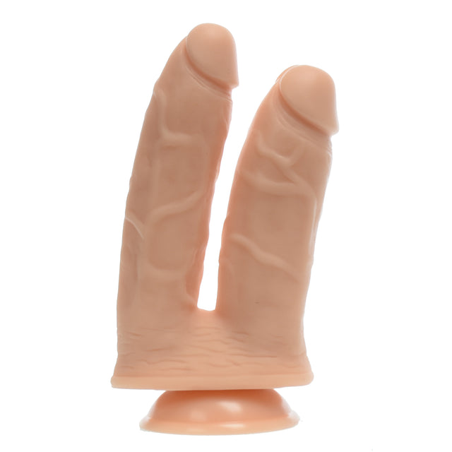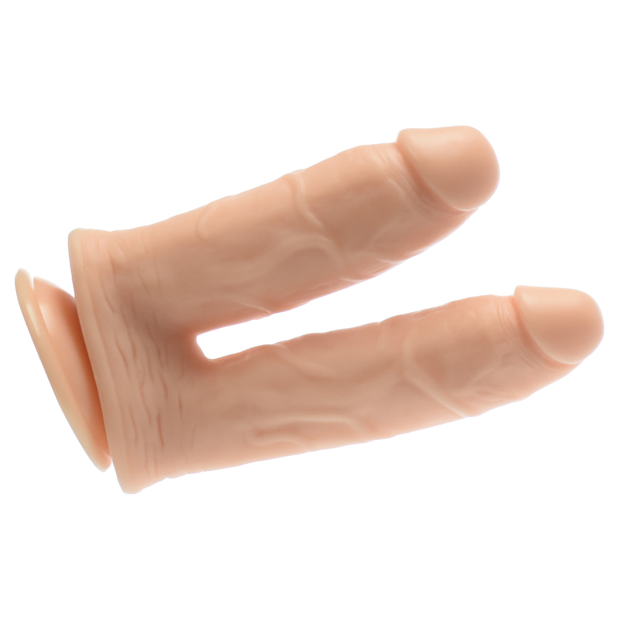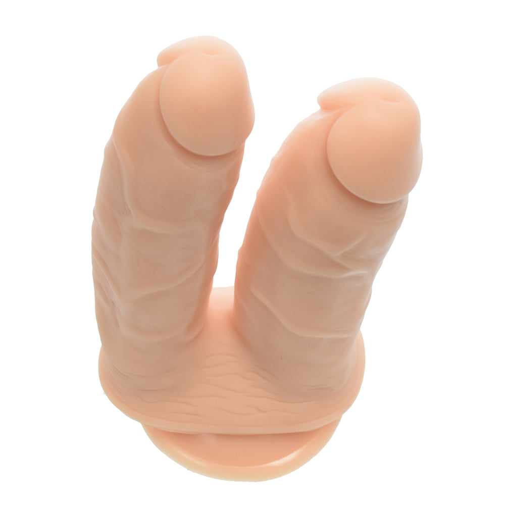 For some filling one hole at a time is just not enough, that's when this realistic double penetration dildo comes in handy, both dildos are girthy this makes sure the holes are filled and stretched, attached is a strong 3.5" suction cup that will keep this toy in place or can be used as a handle for thrusting your holes simultaneously.