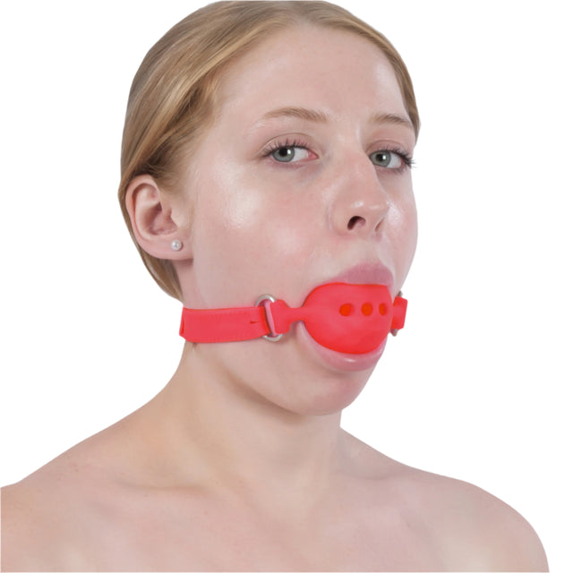 Absolutely gorgeous and silky smooth, This Red Silicone Gag Ball will very effectively gag your sub. This gag ball silences sound and discourages spitting, biting and other various forms of oral disobedience. Filling their mouth with a smooth 2" sphere. The Gag buckles securely into place using a looped pin that can be locked with a padlock, if you'd like.