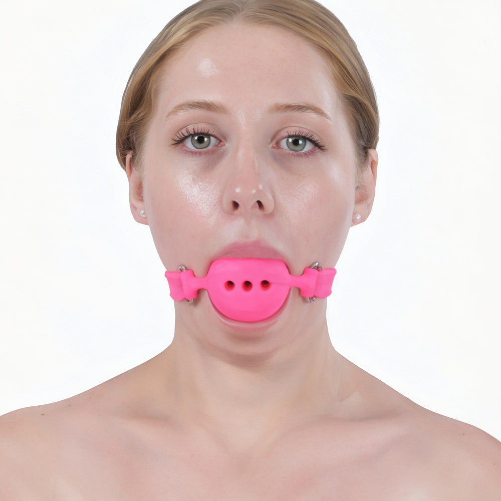 Absolutely gorgeous and silky smooth, This Pink Silicone Gag Ball will very effectively gag your sub. This gag ball silences sound and discourages spitting, biting and other various forms of oral disobedience. Filling their mouth with a smooth 2" sphere. The Gag buckles securely into place using a looped pin that can be locked with a padlock, if you'd like.