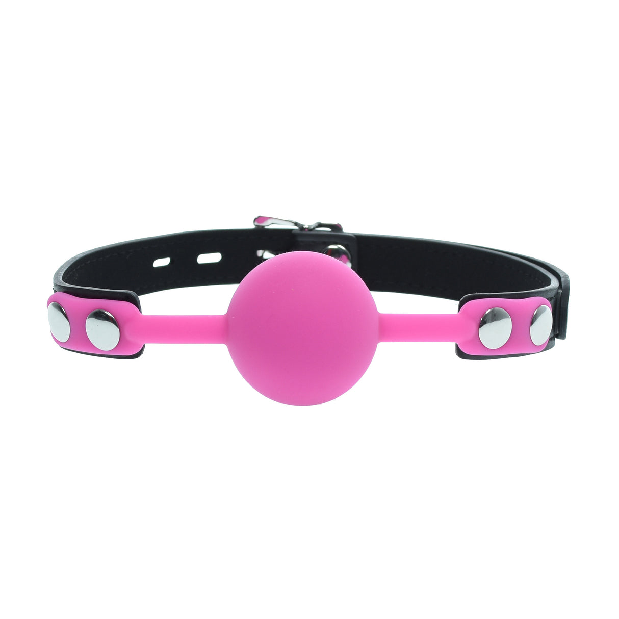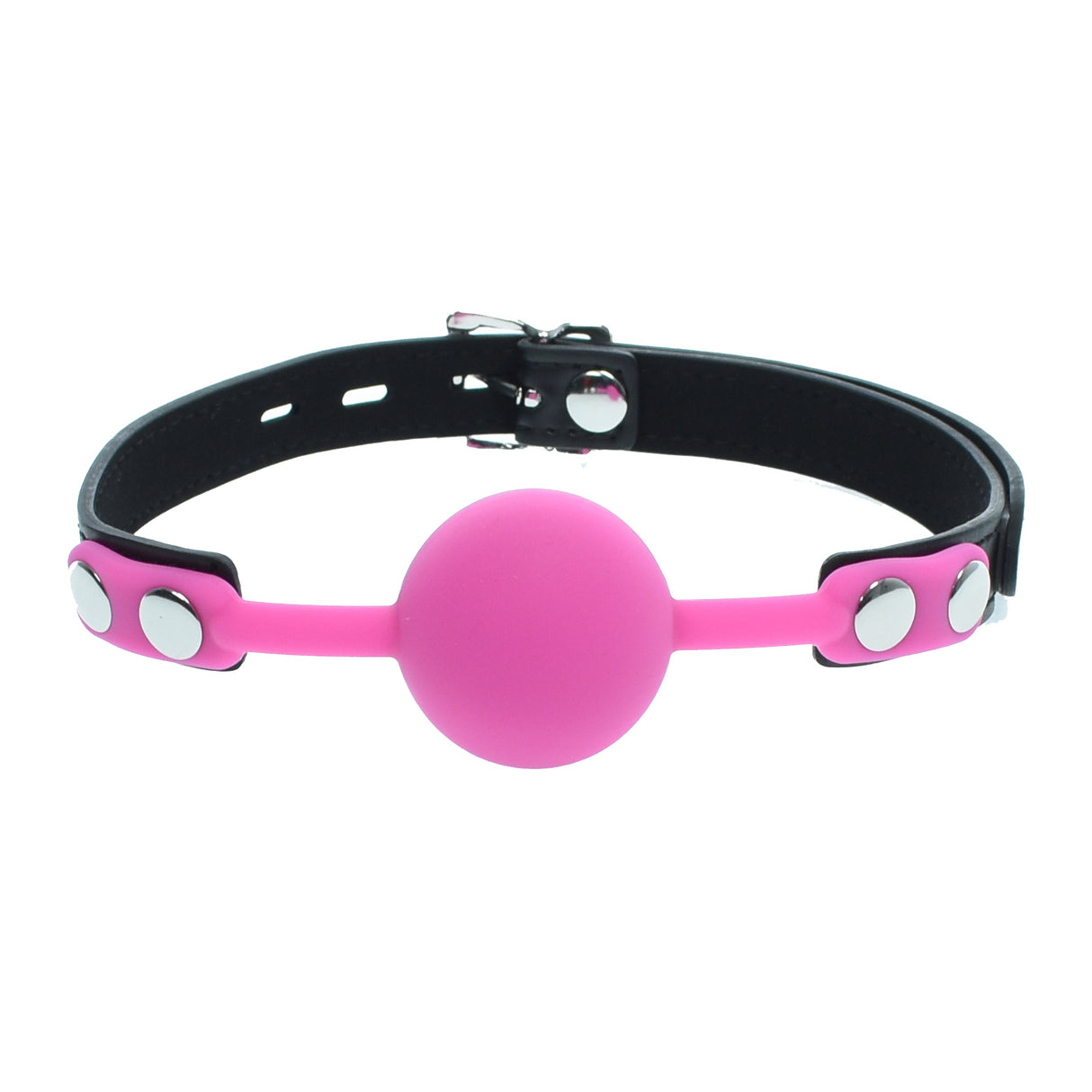 Absolutely gorgeous and silky smooth, This Pink Silicone Gag Ball will effectively gag your sub. This gag ball silences sound and discourages spitting, biting and other various forms of oral disobedience. Filling their mouth with a smooth 1.65" the Gag buckles securely into place using a looped pin that can be locked with a padlock, if you'd like.