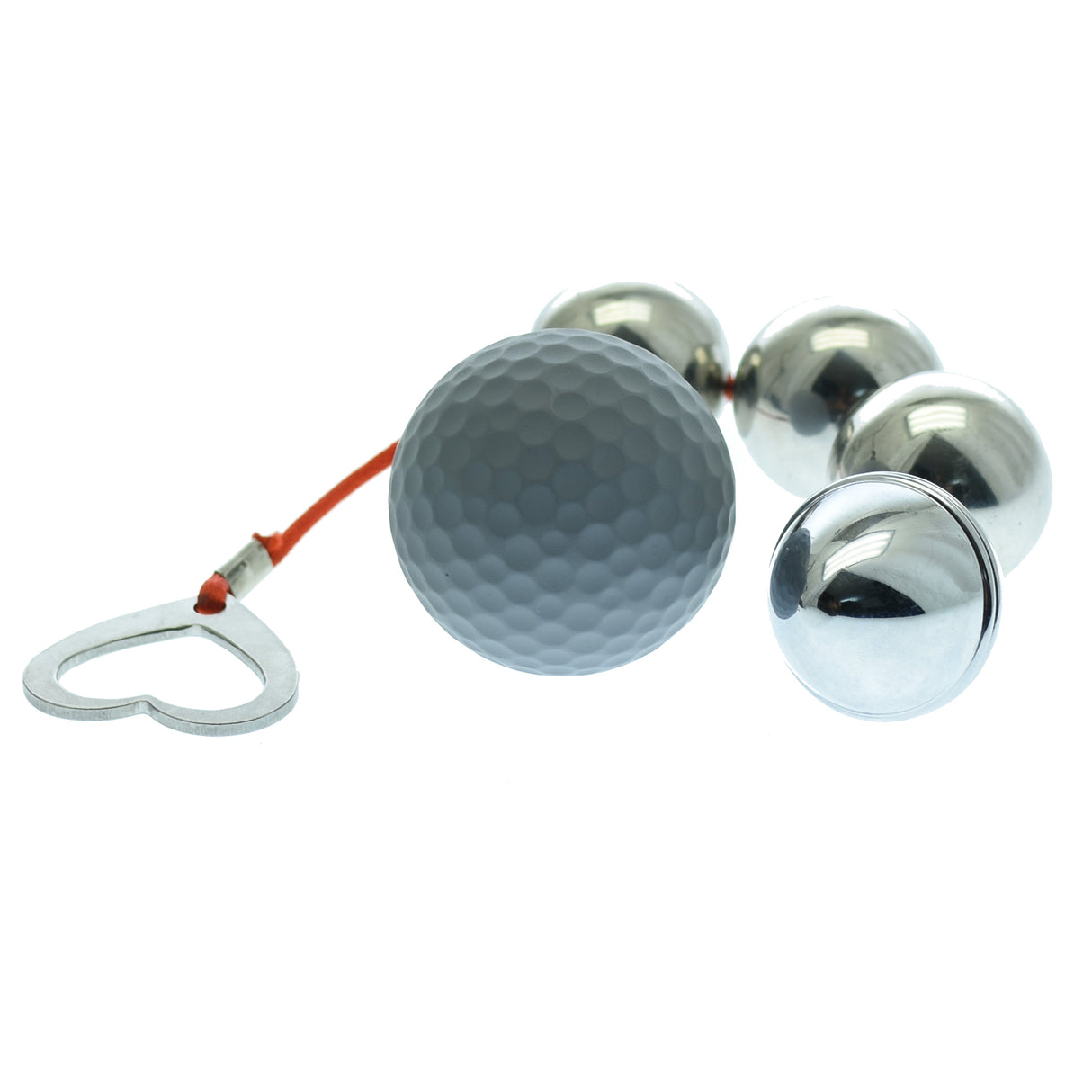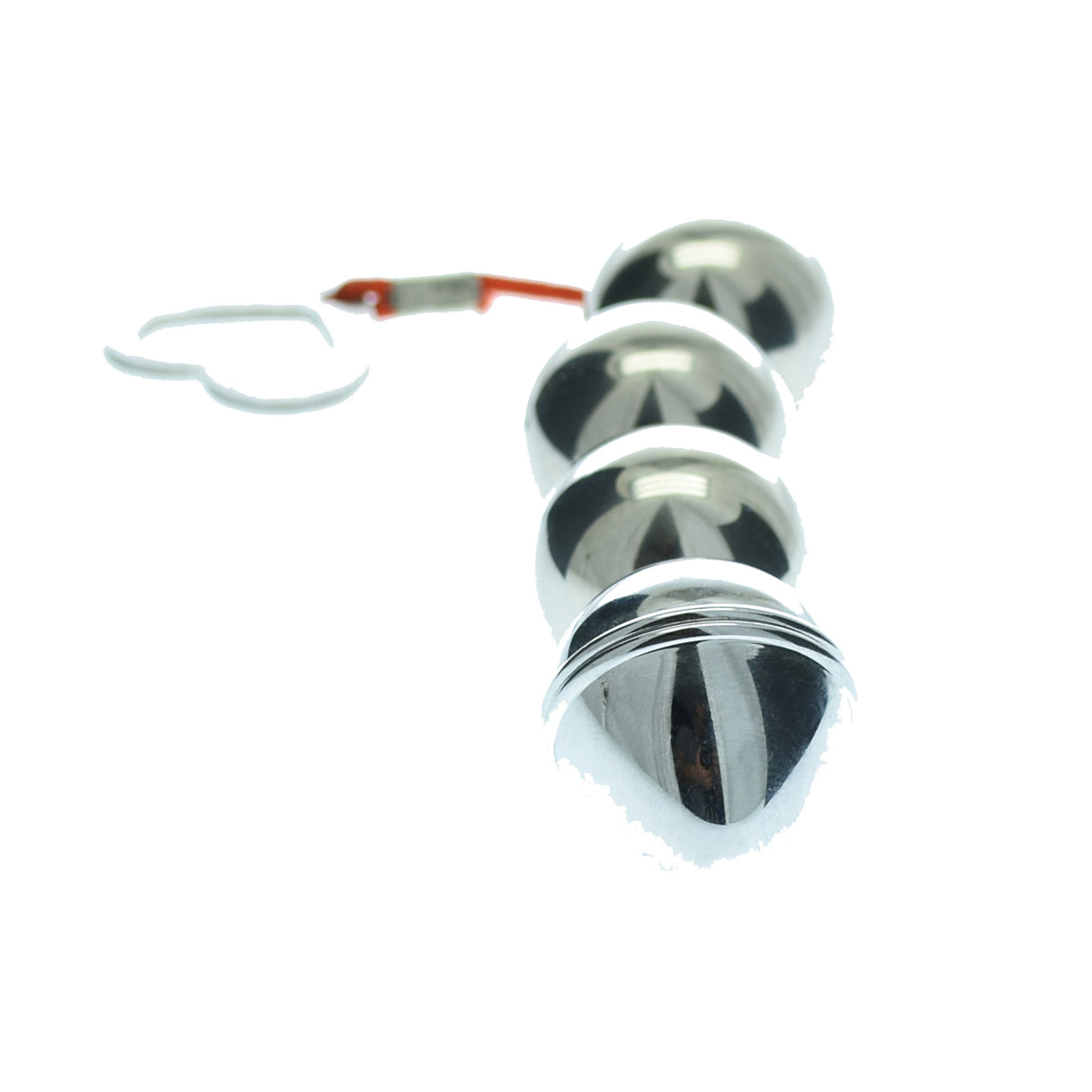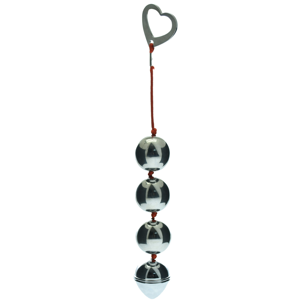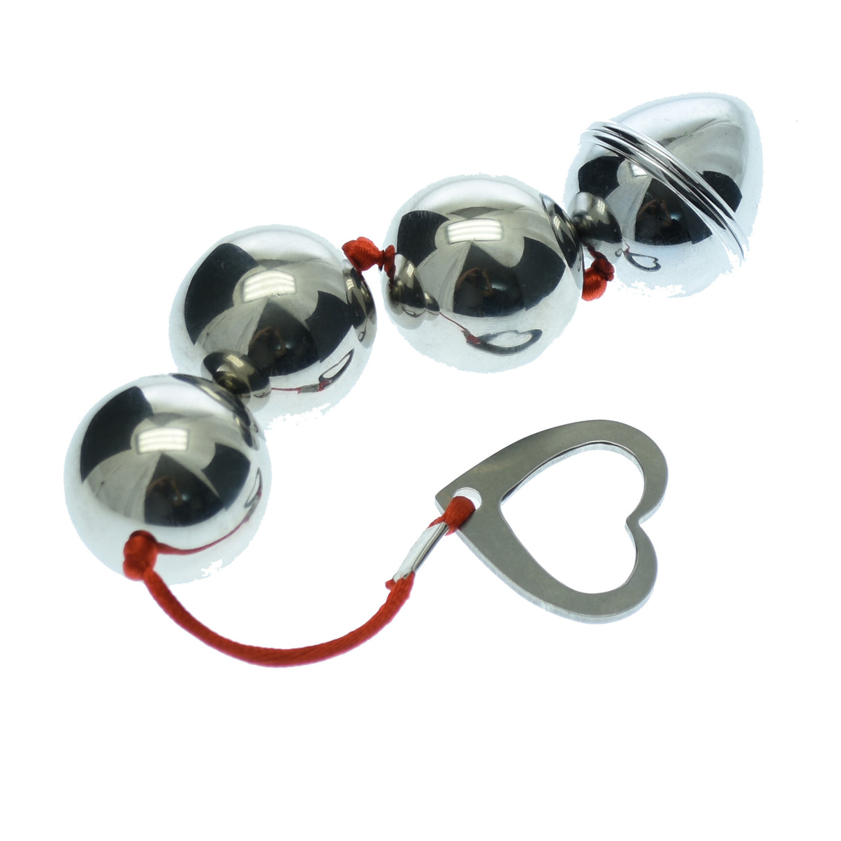 Amplify your anal stimulation with our lightweight metal Anal Beads.  Featuring four balls to play with, and a ridged end bead.The heart shaped metal removal loop ensures safe insertion and easy removal. Give the beads a coating of anal lubricant for extra slip for your play.  These beads are Phlalate and Latex Free. Can be Warmed or Cooled for Added Sensations, and water proof.