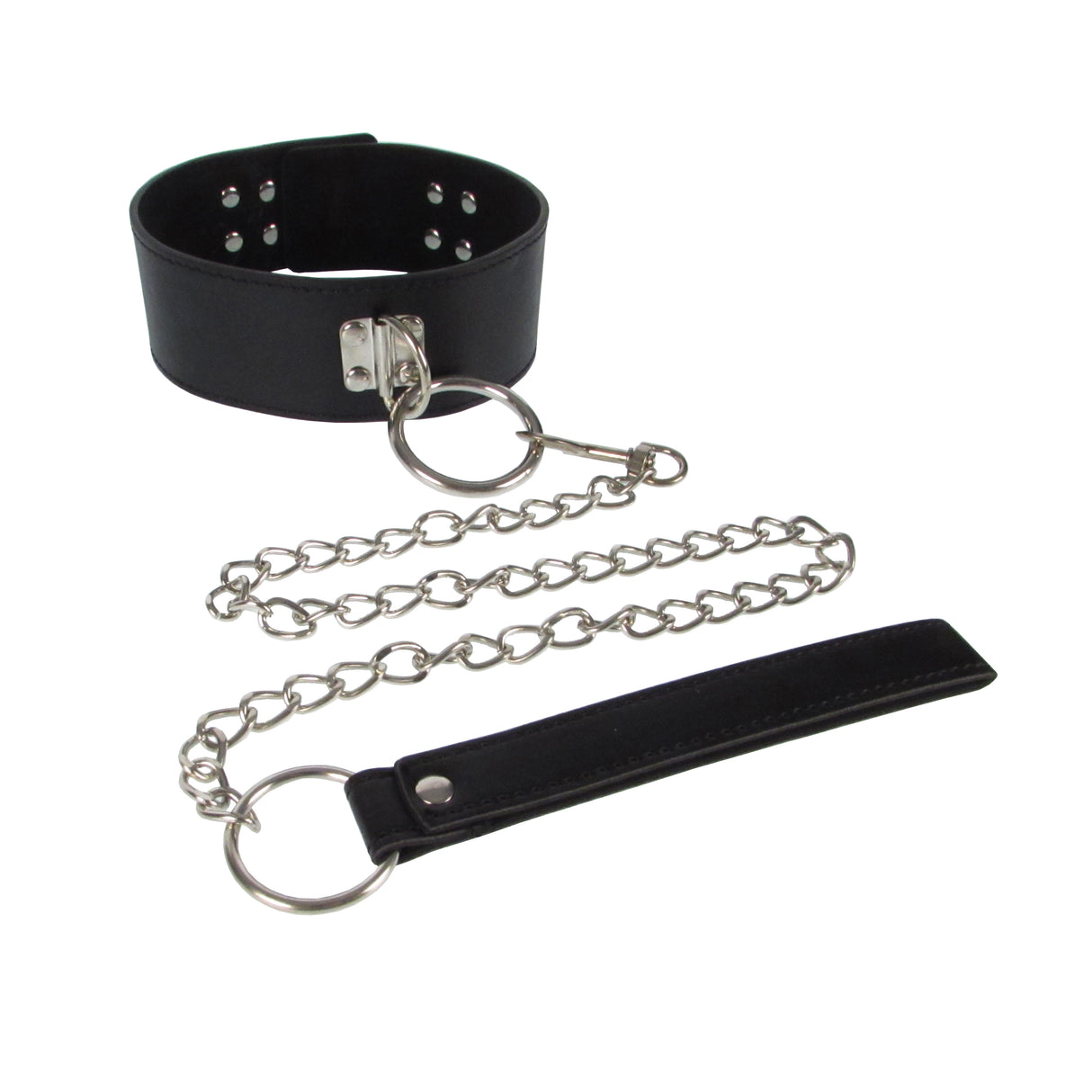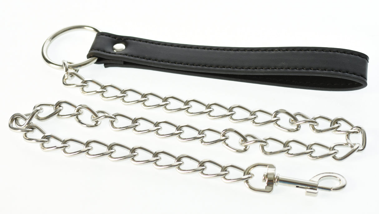 This wide collar set with supple comfort leatherette and strong metal leash and accents is just what you are looking for. Collar accommodates 15”-18” And leash measures 30” This will definitely help you control your BDSM slave a little better and make them more obedient once you pull on the leash.