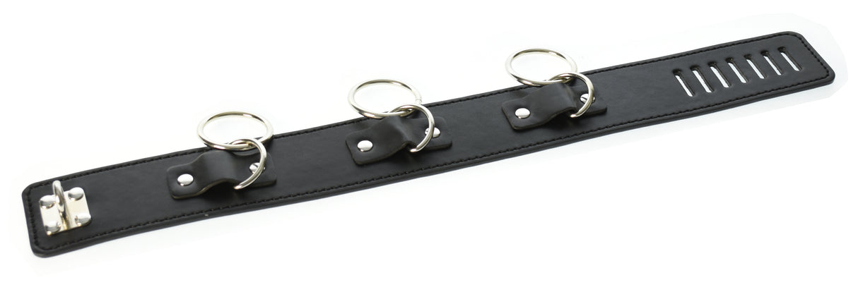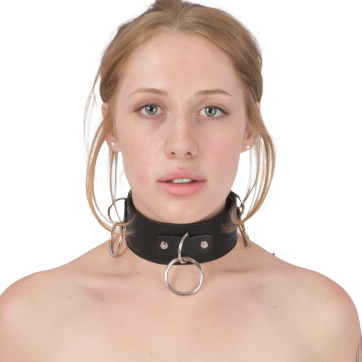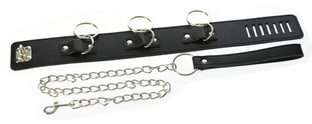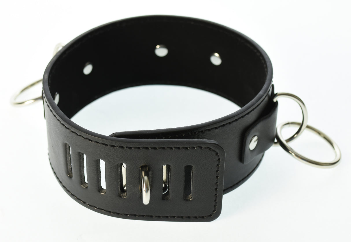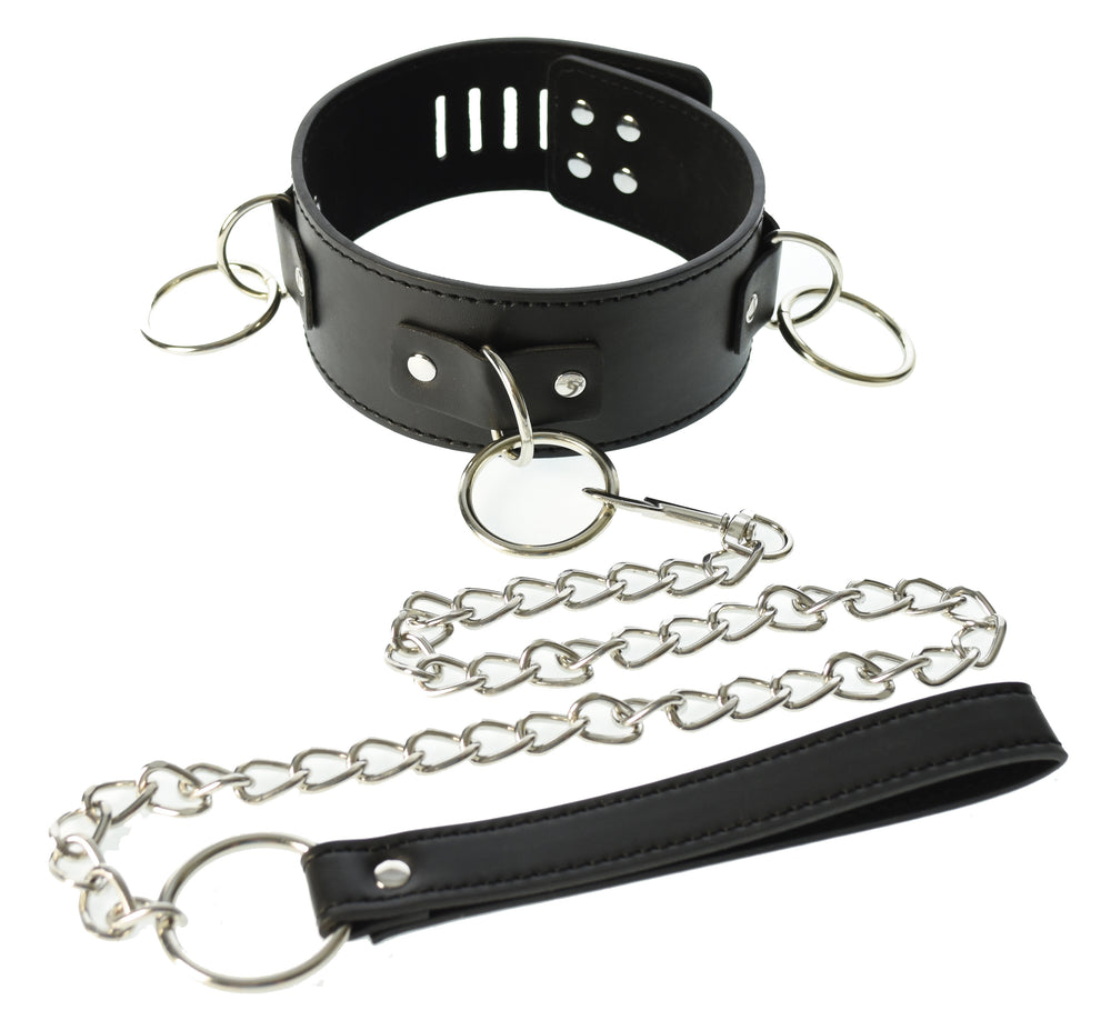 This wide collar set with supple comfort leatherette and strong metal leash and accents is just what you are looking for. Collar accommodates 12”-16” And leash measures 30” This will definitely help you control your BDSM slave a little better and make them more obedient once you pull on the leash.