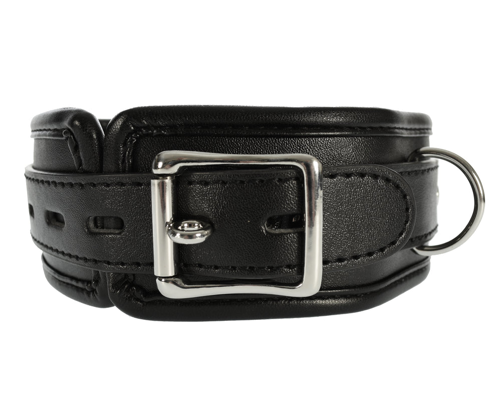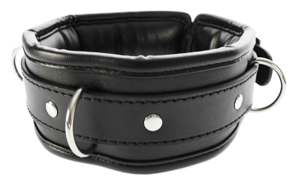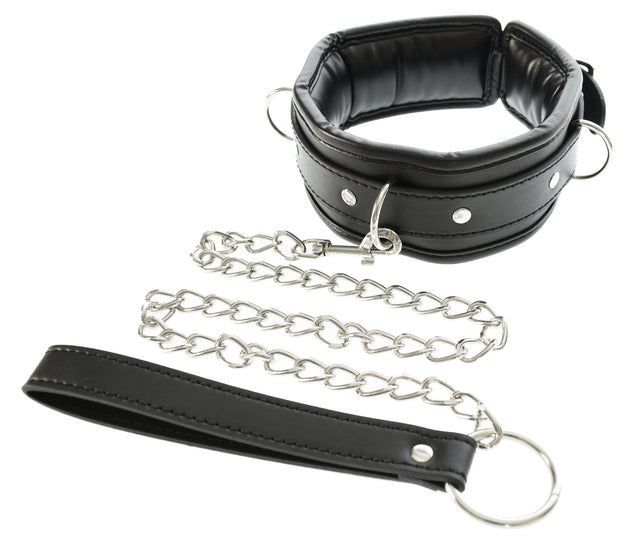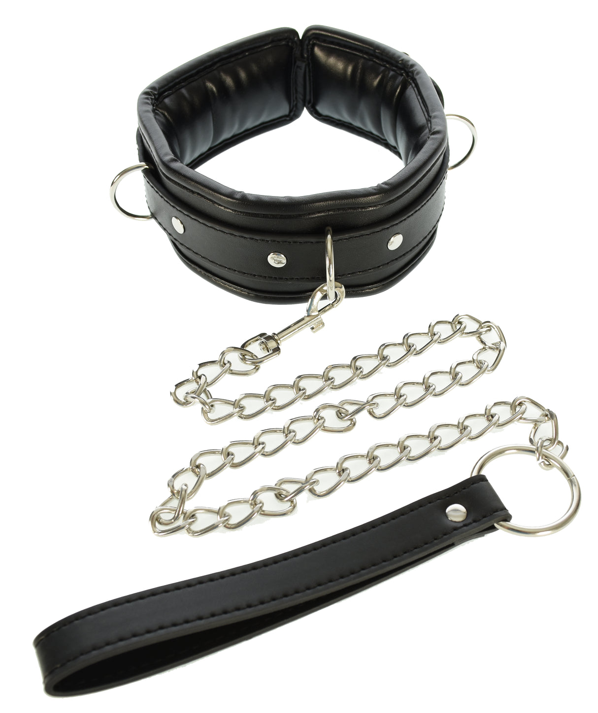This wide collar set with supple comfort leatherette and strong metal leash and accents is just what you are looking for. Collar accommodates 11”-17” And leash measures 30” This will definitely help you control your BDSM slave a little better and make them more obedient once you pull on the leash.