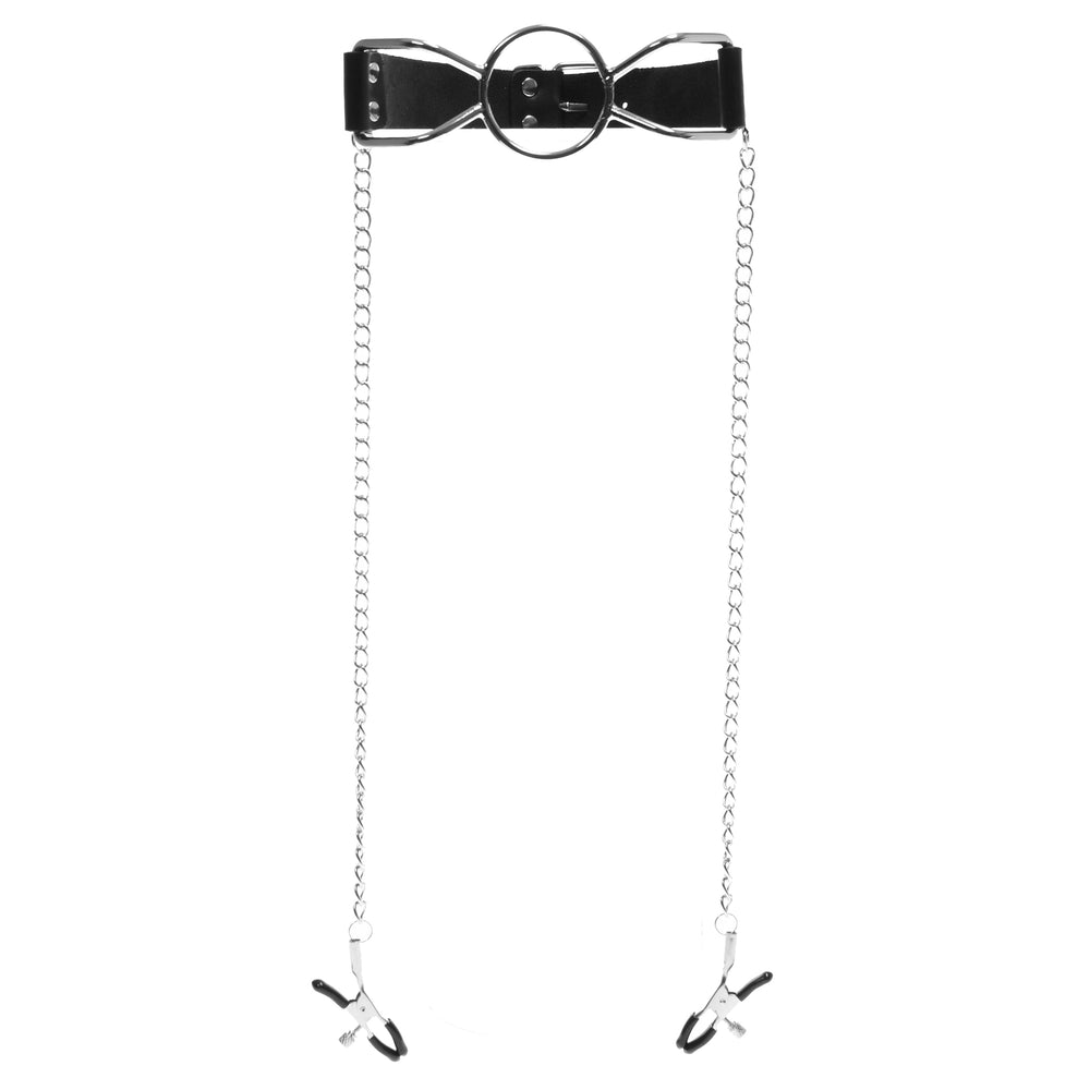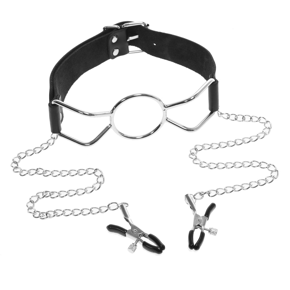 Large 2 Inch Open Mouth Spider Gag With Nipple Clamps