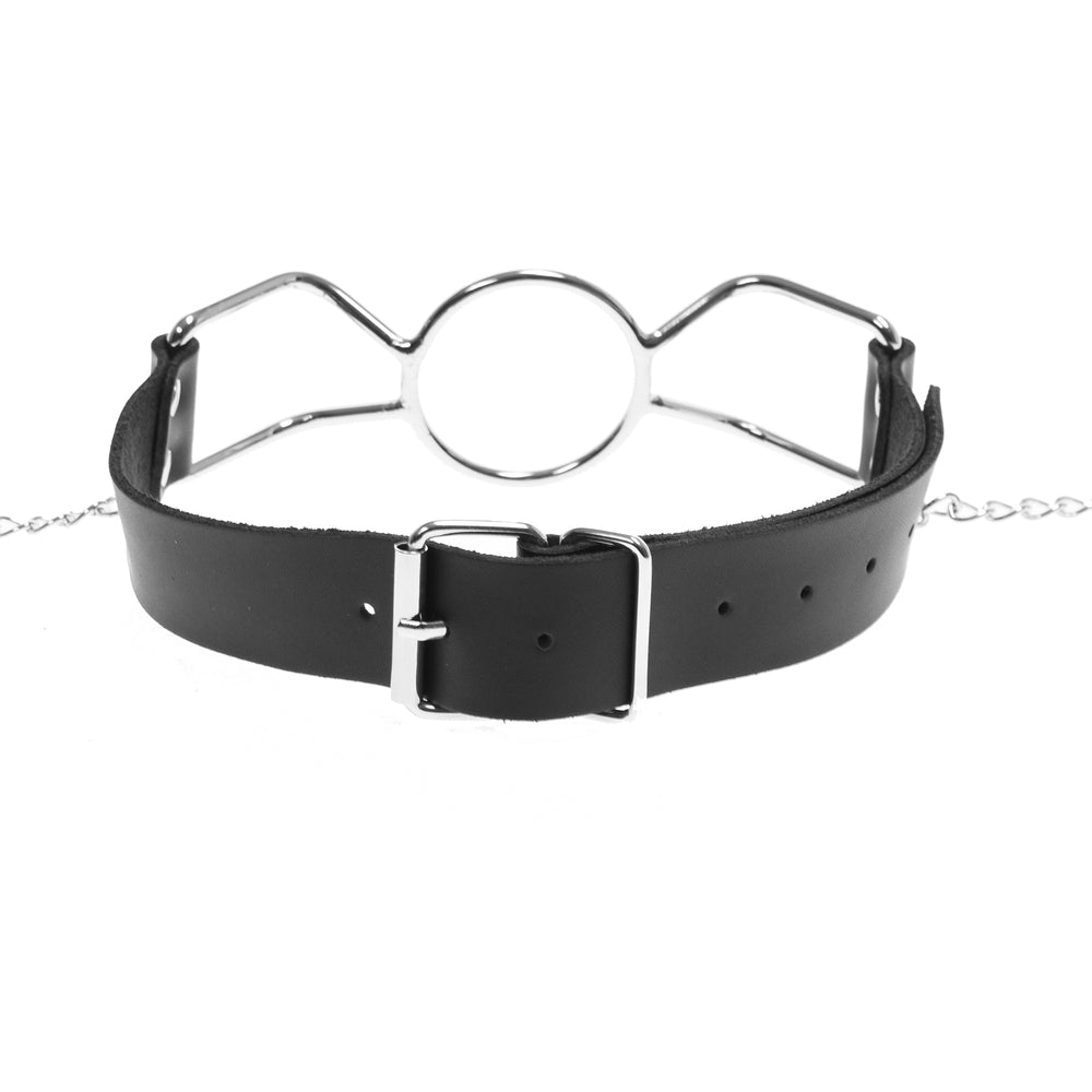 This Large Open Mouth Spider Gag Ring will leaves your sub speech-less as the 2" wide ring forces there mouth to stay open. The round 1.75" wide ring opening will give you access to their mouth, while the Genuine leather straps keep the gag firmly in place. Also this takes things up a notch by allowing you to attach bull-nose style nipple clamps. Turn the screws to apply the amount of pressure you want. The tips, coated in vinyl, keep things comfortable but effective.