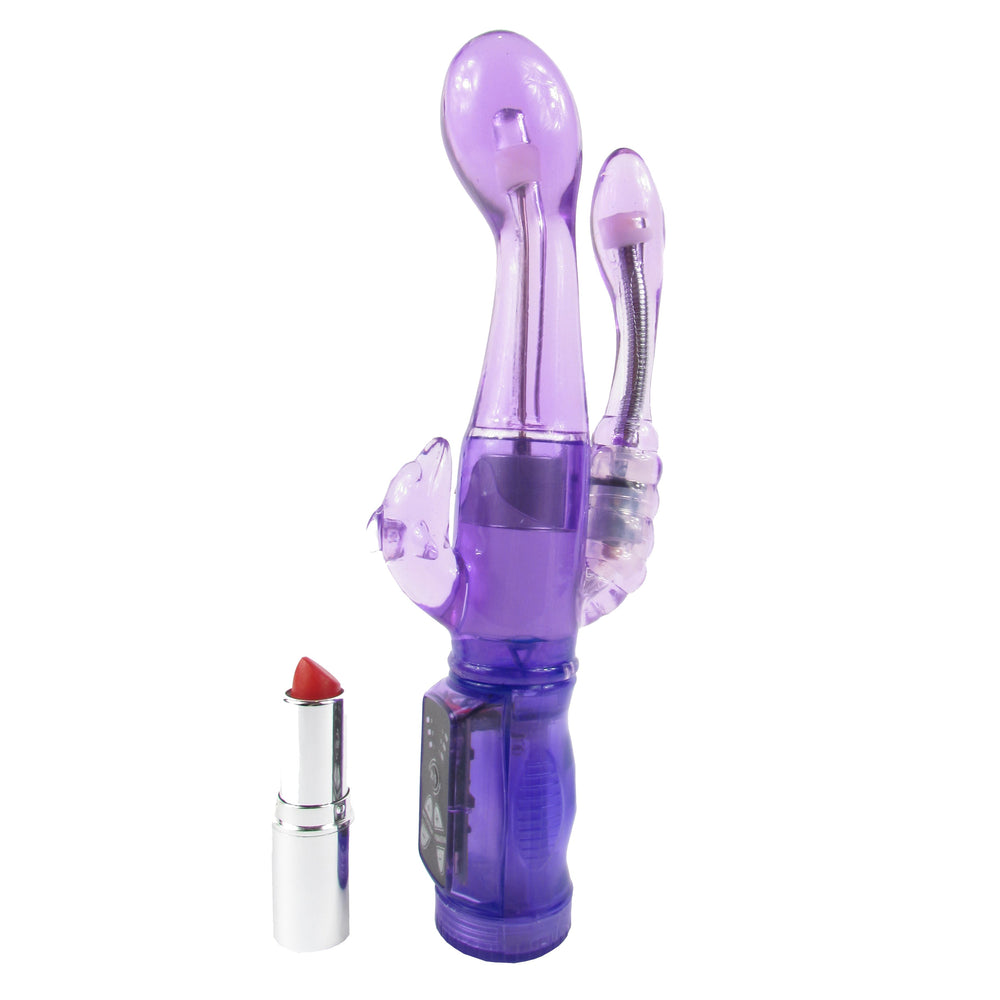 9 Inch Double Penetration Waterproof Rabbit - Purple is backordered and will ship as soon as it is back in stock.