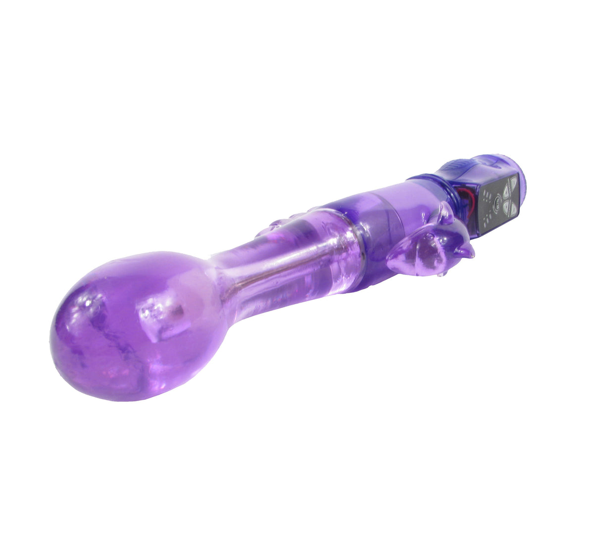 Three speeds of thrilling vibration plus three more speeds of shaft rotation make for endless pleasure permutations, carried better than ever through the velvety silicone shaft and flexible bunny. Two powerful motors drive all those orgasmic patterns of vibration strongly and evenly throughout, they'll resonate through the entire vibe and straight to you. Within easy reach at all times, a simple interface controls the stimulation easy up and down buttons vary speed at which the shaft rotates and vibrates. With a Length of 9" and Insertable Length: 4.5" Head Girth: 4.25" this double penetration bunny is here to please. This ilotoy Waterproof Double Penetration Bunny cleans easily using warm soapy water or a good toy care fluid/foam. Compatible with all lubricant types. Requires 3 AAA batteries (sold separately). Waterproof. Materials: ABS Plastic, (TPR)