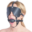 This blindfold head harness features a large 1 7/8" gag ball and durable PU leather construction, providing a restrictive yet comfortable fit for your BDSM play. The integrated blindfold adds an extra element of sensory deprivation, making it perfect for beginners or experienced kinksters alike.